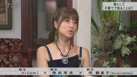 伴は自身と同じエイベックス所属の歌手、倖田來未(36)、hitomi(43)とともに番組に出演。「去年7月に離婚した」と切り出すと、「子供たちにとって父親であることは変わりないから。まだ連絡も取っていて、友達みたいな感じに戻ったっていうのかな。そんな感じ」と続けた。