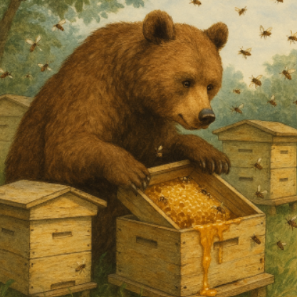 せっせと卵生んで子供を育てる為に集めた蜜を貯蔵する家を作ってんのに、その物件は俺様の所有物の中に作られたものだからと蜂の家と蓄えを奪ってるだけなんよね