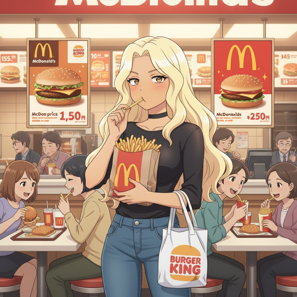 「品質的にはバーガーキングのほうが上、しかも価格は同等となれば、完全にバーガーキングの勝ちです。しかし単純にそうはならないのが飲食の面白いところです。脂を落として香ばしく焼かれたバーガーキングのパティより、牛脂にまみれたワイルドな風味の(臭みを残した)マクドナルドのパティのほうを好む人は案外少なくありません。実は私もその中の一人です。フレッシュな辛味を残したバーガーキングの玉ねぎより、完全に辛味を抜いマクドナルドのほうが食べやすいと感じる人もたくさんいるでしょう」