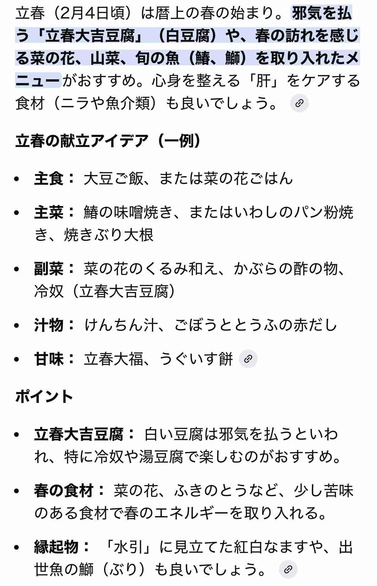 今まで節分(恵方巻き買って手抜き出来る日w)のことしか考えたことなかったけど、立春の食に思いを馳せるのも素敵だね🌸