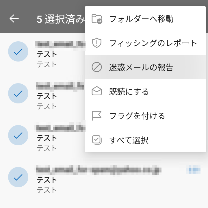 画像のように、メールを開封しなくても、まとめて報告できます。