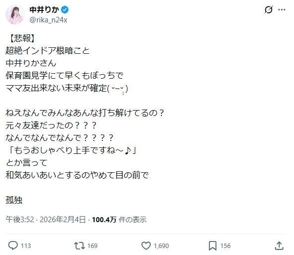 相手にされないからって、園児のママたちの悪口発信しそうだな。
