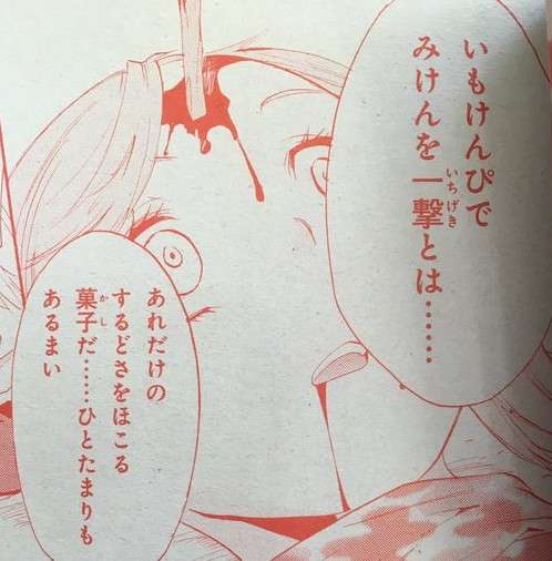 頭に芋けんぴつけてく