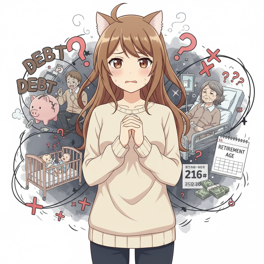 元々不安感が強い性格でしたが、最近は物価高騰で家計がだんだんカツカツになってきたり、夫の持病も働き方を考えるほど調子が悪くなってきたり、親の老いも目立ち介護問題を考えたり、そんな中でもまだ小さい子供の育児との両立のことを考えたり、とにかくもう不安だらけです。
